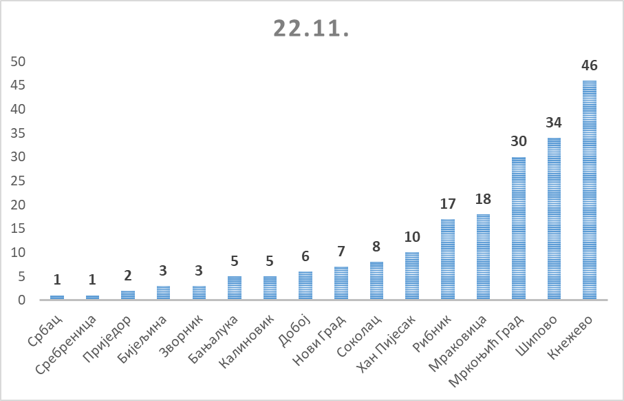 У Мркоњић Граду је било мало хладније и снег је падао без престанка током 21. и 22.11. Висина снежног покривача 22.11. у 13 часова износила је 37 cm.