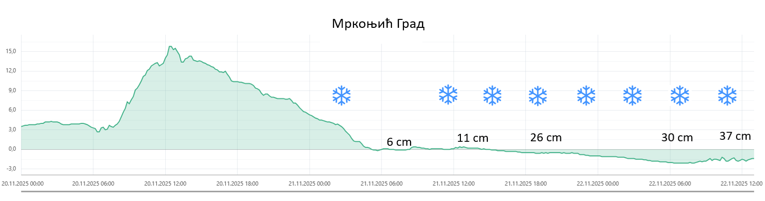 20.11.2025. било је топло, увече је почела јача киша на северозападу, а у ноћи је дошло до јачег захлађења и до наредног јутра 21.11.2025. на западу се формирао мањи снежни покривач.