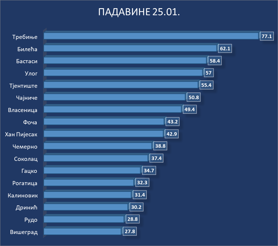 Максимална температура 25.01. на појединим метеоролошким станицама: